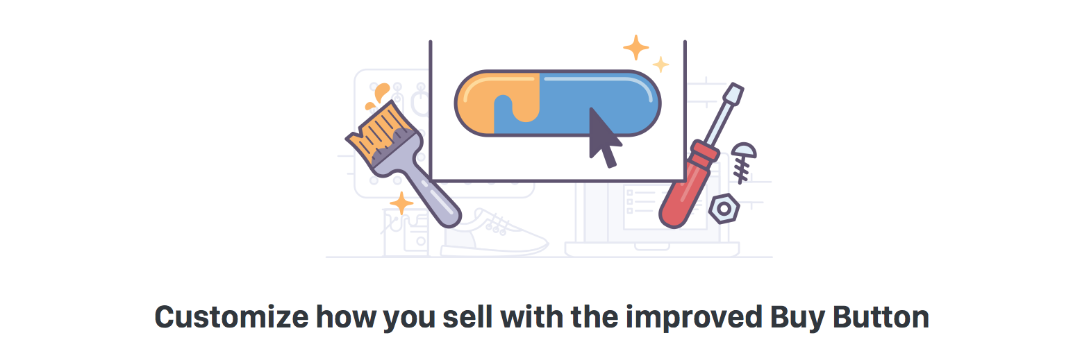 這個(gè)元素與那個(gè)元素融合,就能表達(dá)我們想要傳遞的內(nèi)容。可能這類比喻使用起來需要更老道的經(jīng)驗(yàn),但在產(chǎn)品插畫里的確更受重視,或者說一般設(shè)計(jì)都會(huì)考慮它,因?yàn)樗亲層脩臬@知你的產(chǎn)品或功能賣點(diǎn)的捷徑。如下圖所示,沒錯(cuò),你知道我們提供了“購買”的按鈕,但瞧瞧旁邊擺放的畫筆,基于對(duì)畫筆的了解,你就會(huì)明白你能定制“購買”按鈕的顏色。將刷子的功能與按鈕的功能混合起來,刷子可以自定義顏色,因此我們的按鈕也可以。與品牌和營銷設(shè)計(jì)一樣,這種比喻在圖標(biāo)設(shè)計(jì)中也時(shí)常出現(xiàn)。
