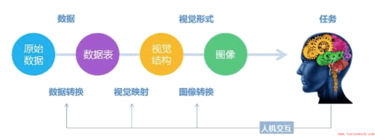 • 將視覺結構進行組合,把它轉換成圖形傳遞給用戶,用戶通過人機交互的方式進行反向轉換,去更好地了解數據背后有什么問題和規律。