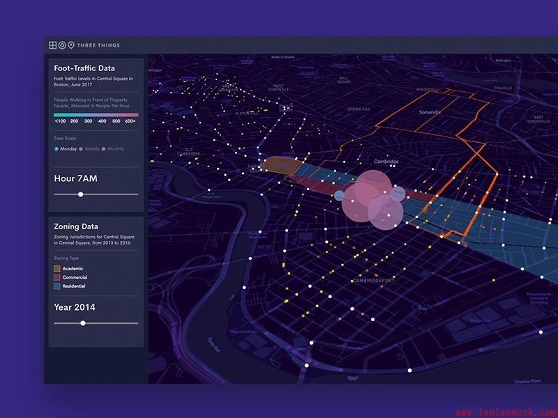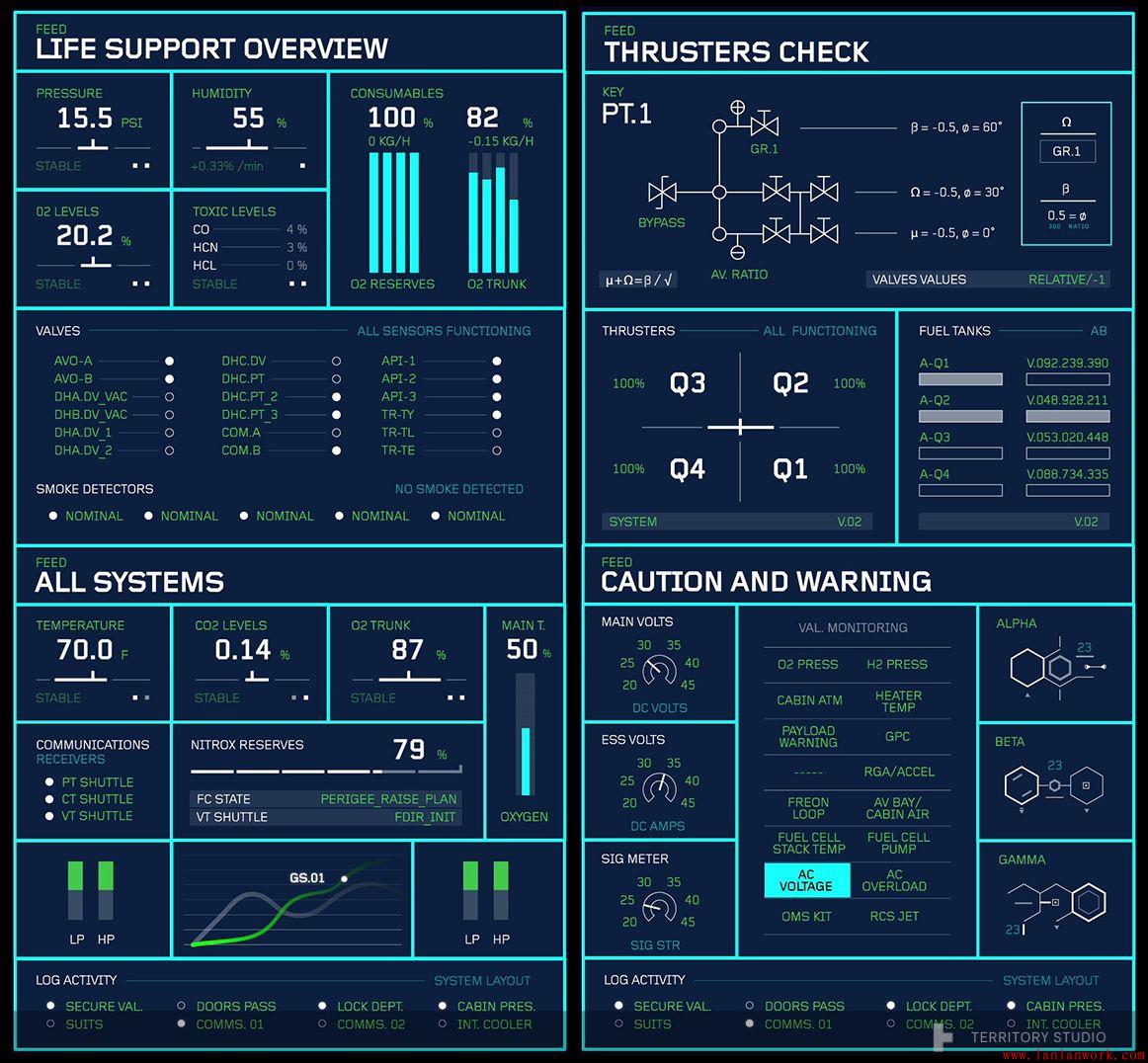 大屏可視化界面設計可謂是當今行業、企業發展的見證,生動直觀地再現了行業、企業的全貌。不僅作為展示,方便了解、監督;同時可以作為一個有效的管理平臺,帶來效益。大屏界面面向范圍廣,協同性好,易于被采用。下面幾個大屏的界面設計,沉穩的背景上,加上亮色作為點綴和強調。既不失其風格,又富有靈動性。