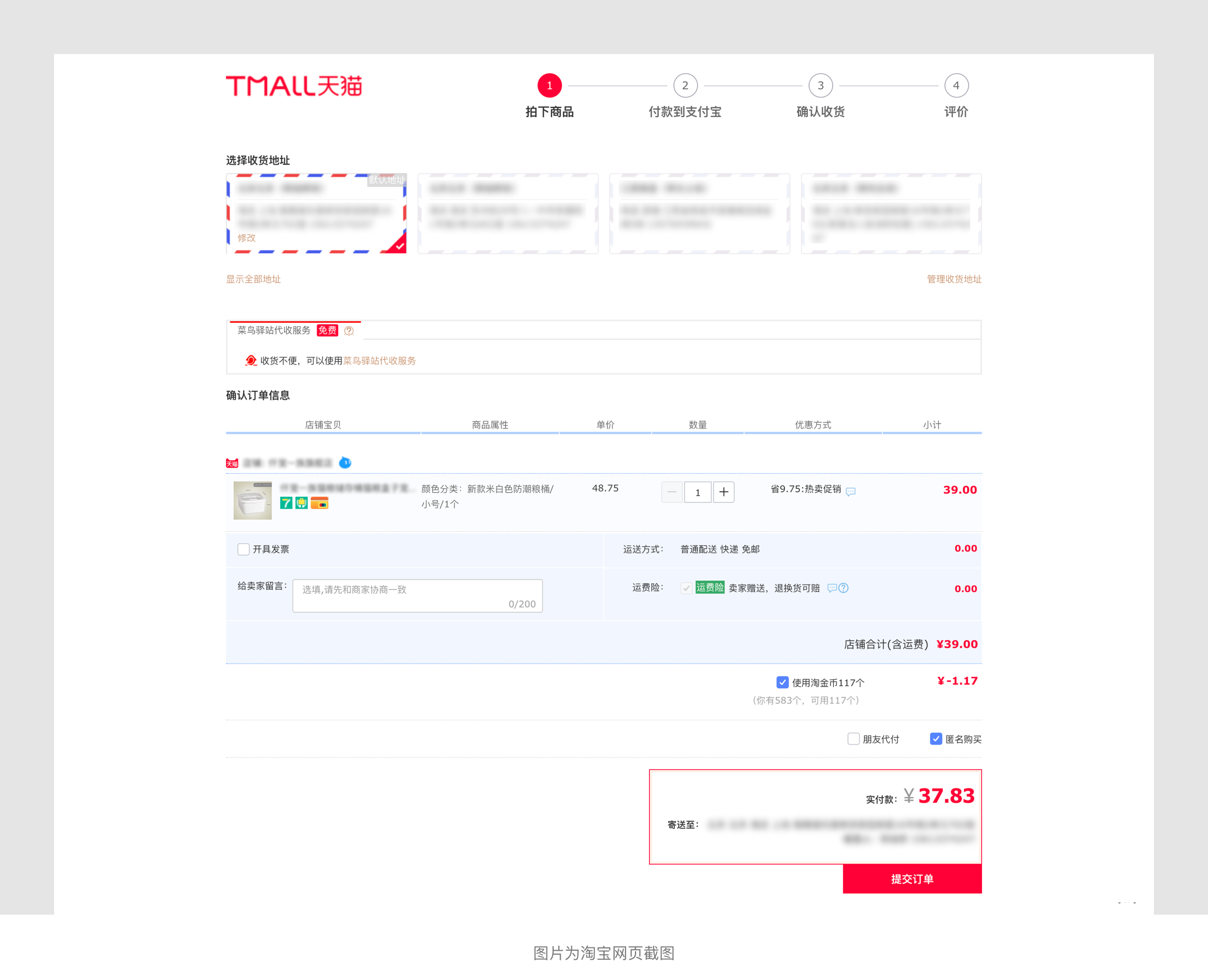 我們以淘寶來舉個典型的例子,淘寶屬于國民電商平臺也是亞洲較大的網上交易平臺,提供各類優質商品。從平臺的特性來講,它以用戶下單并成交作為最終目標。其中支付表單起著一個關鍵的作用,用戶從購買到支付完成以分步形式進行,第一步填寫基本信息并提交訂單,第二步選擇商品并選擇支付貨款至第三方,第三步買方確認收貨并自動打款給商家,第四步完成訂單并評價。在填寫表單時中間沒任何阻斷,用戶能很順利的按步驟完成訂單。淘寶支付表單屬于比較典型的分步表單。