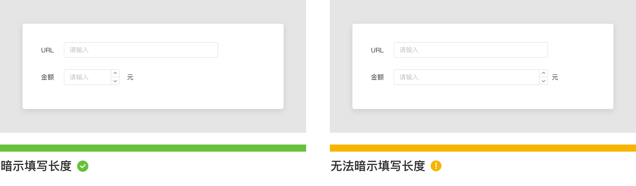 在實際業務中,設計師常常習慣把每個表單字段都設置成相同的寬度,在視覺效果上看感覺會比較統一,但是這種做法實際上體驗欠佳。字段的寬度應該向用戶暗示所需輸入內容的長度從而減輕判斷負擔。在Ant Design 4.0 系列分享的文章《整齊劃一?不如錯落有致》中分析到錯落有致的排版表現似乎比整齊劃一的左圖更舒適,因為在視覺上我們更容易將右圖的空間和內容視為一個和諧的整體。但左圖過度的對齊導致暗示隱性的截斷,我們慣性視覺會產生表單字段右側空間缺了一大塊的錯覺。
