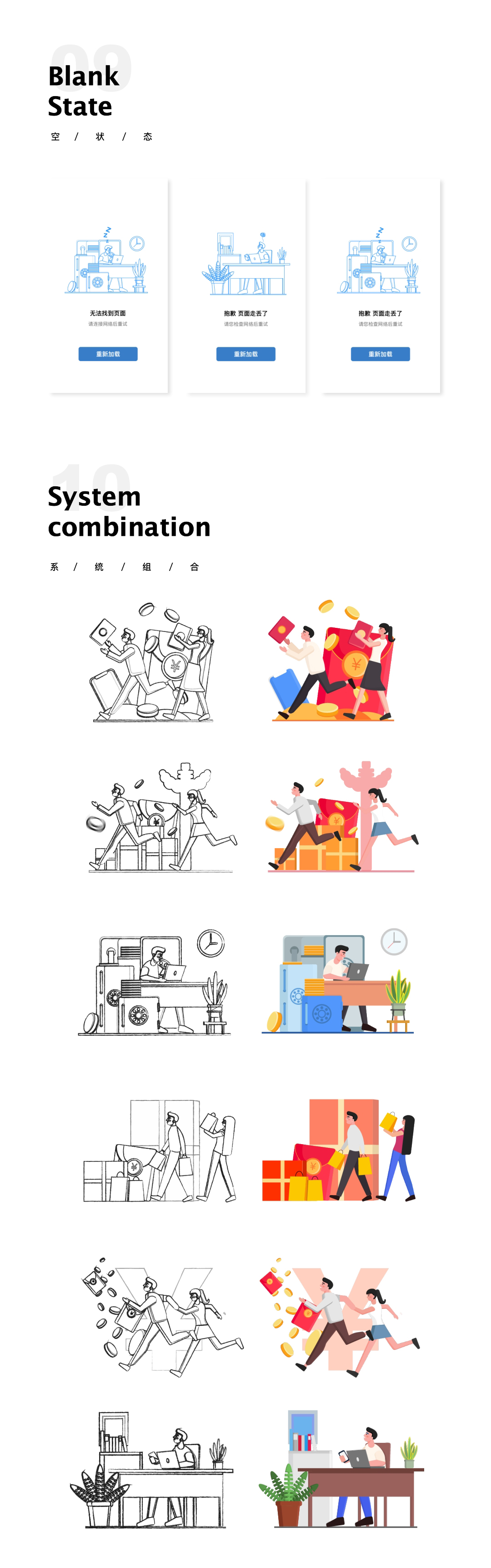 插畫在互聯(lián)網(wǎng)行業(yè)設計中有著大量地運用,合理地使用插畫不僅能夠增強視覺感染力,塑造品牌認知,而且可以提高用戶活躍度和活動轉(zhuǎn)化率。組件化設計可以解決插畫風格不統(tǒng)一以及設計產(chǎn)出效率低,缺少情感化設計等因素。