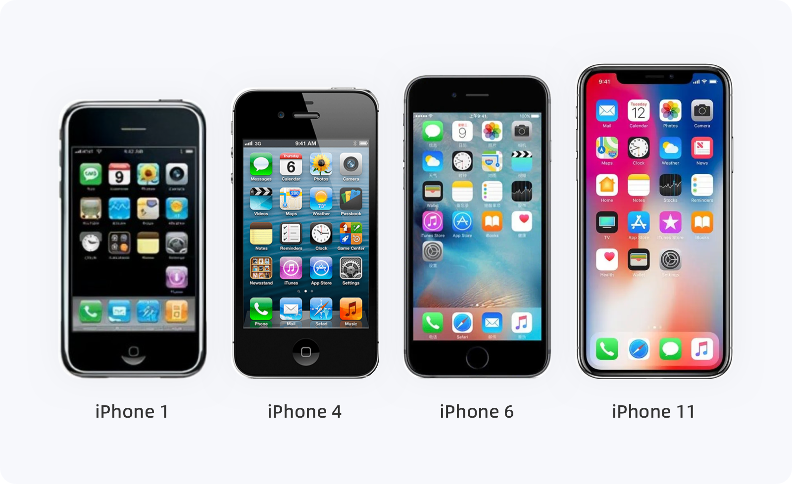 當2007年 iPhone Runs OS X(iOS 1 系統)出現時,應用界面和操作上跟現在的系統很像,里面也有了郵件、日歷、照片、時鐘、文本、Safari、便箋等應用。流暢的動畫、多點觸控的交互方式、簡潔的UI足以顛覆人們對于傳統意義上手機界面的認識。隨后,iOS 系統每次新版本的出現,都有一些變化,但與iOS 7 相比,就是小巫見大巫了。2013年,iOS 7 的發布,是迄今為止 iOS 系統史上設計風格的最大一次升級,UI設計由之前的擬物化轉向扁平化,整個系統外觀看起來十分簡潔,新增的指紋解鎖、控制中心設置快速切換、中國人喜愛的九宮格輸入法,以及簡化的圖標、交互的過渡動畫等,基本上每一各元素都在根據用戶的操作及行為習慣發生變化。毫不夸張的說,iOS 7 系統改變了近十年的設計風格,設計趨勢也正式從擬物化(復雜)時代走向扁平化(簡約)時代。iOS 12 在設計上雖然沒有太大變化,但系統的流暢度相對提升了很多,例如相機啟動速度提升70%、App啟動速度提升40%,新增勿擾模式、密碼自動填充等,包括后面 iOS 13 更加省電、面部解鎖速度提升、安裝包/更新包內層變小等,無一不是在將事情變的更簡單、更容易。