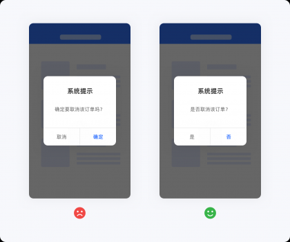 用戶的每一次操作及信息的接收都是與產品的一次交流,在對話方面,不應該使用多重否定、較長的定語或含糊其辭的描述,以免用戶出現認知偏差導致理解上的錯誤,減少用戶出錯率最直接的方法就是用通俗易懂的極簡話術與其交流。