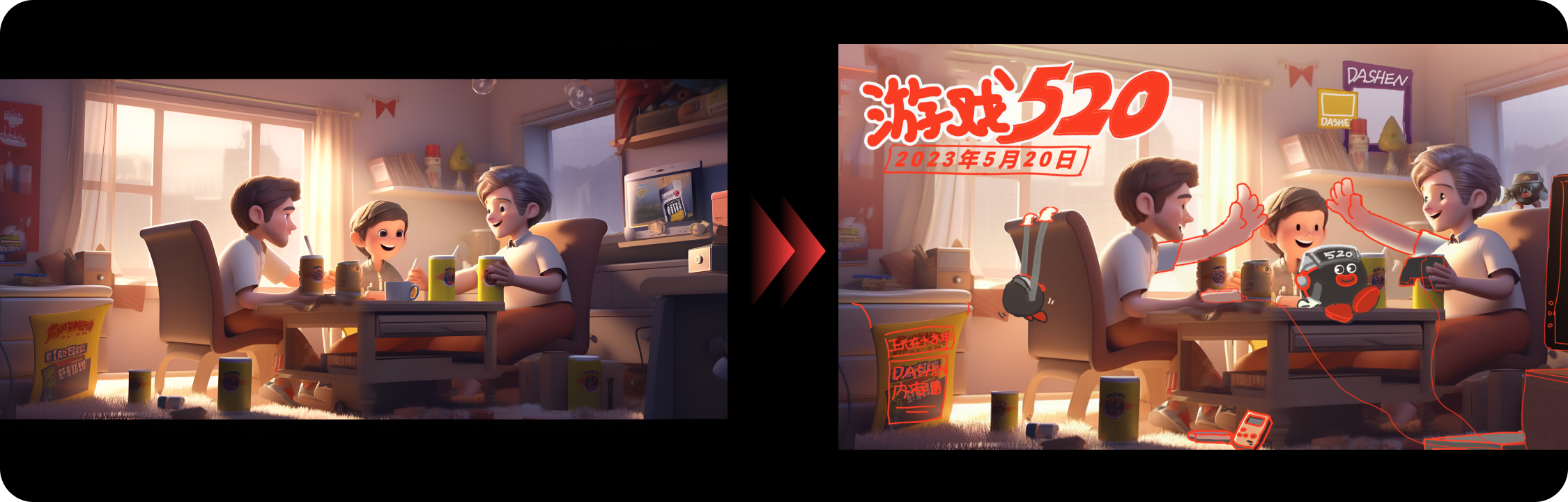 在此基礎上,我們進一步優化畫面,將畫面中一些不合理的元素運用上述同樣的方式替換掉,并把文案擺放至畫面中看看整體的效果。如下圖所示: