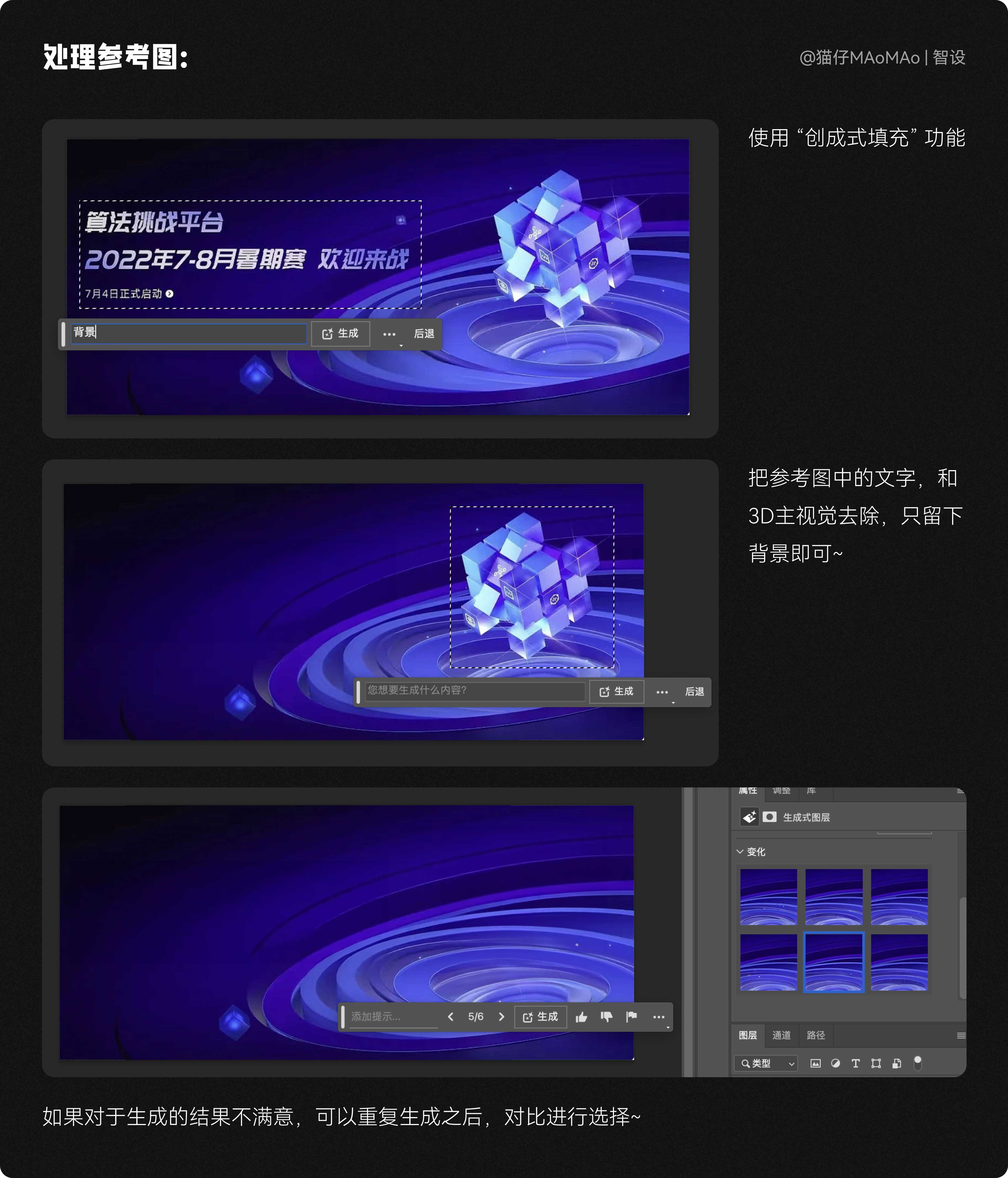 盡管AI現(xiàn)在可以輔助我們進行設計,但設計師的審美和基本功仍然至關重要,在輸出核心素材時,我們需要通過不斷微調(diào)細節(jié),從大量素材中精挑細選出最合適的那一個,最終得到我們需要的背景素材圖。