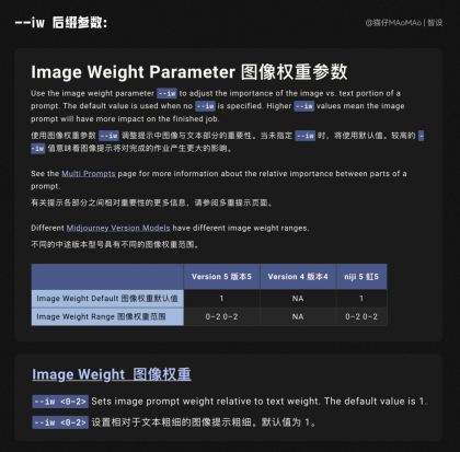 這個時候不要慌,也不要著急去改關鍵詞,我們只需要添加上一個神奇的后綴“--iw 2”,官方文檔的翻譯中,這個參數(shù)叫做“圖像權(quán)重參數(shù)”,用來調(diào)整關鍵詞中文本與參考圖的相似度,默認值為 1 ,范圍為 0~2 ,值越高,生成的圖與原圖更像,注意在 V5 和 niji 模型中使用才能生效。