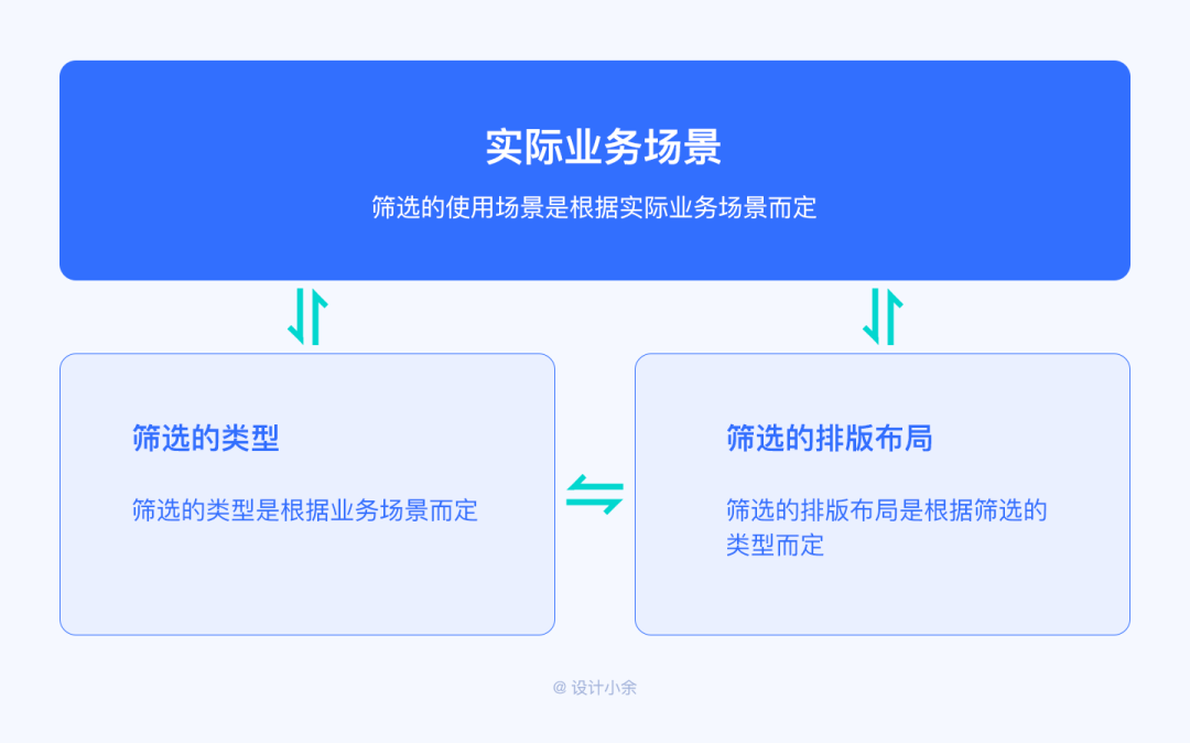 篩選的類型是根據(jù)業(yè)務(wù)場(chǎng)景而定,篩選的排版布局是根據(jù)篩選的類型而定,篩選的使用場(chǎng)景是根據(jù)實(shí)際業(yè)務(wù)場(chǎng)景而定,所以首先我們需要理解清楚真實(shí)的業(yè)務(wù)場(chǎng)景,再通過分析選擇適合的篩選類型,當(dāng)已經(jīng)知道了篩選類型,我們只需要根據(jù)篩選的條件和頁面的交互及空間利用情況選擇合適的布局方式即可。