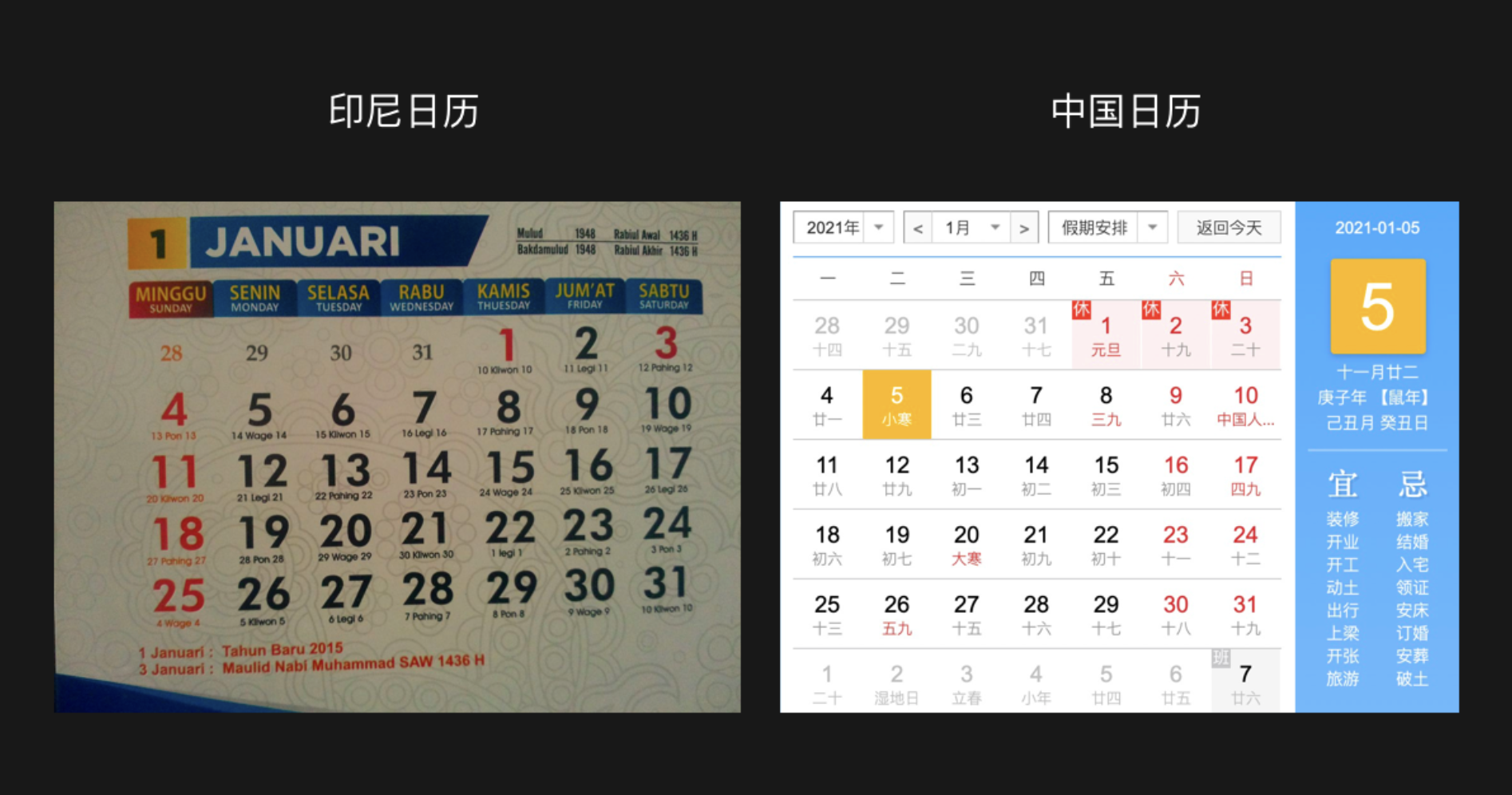 印尼的日歷沿用了西方的傳統慣例,將星期天作為一周的開始。