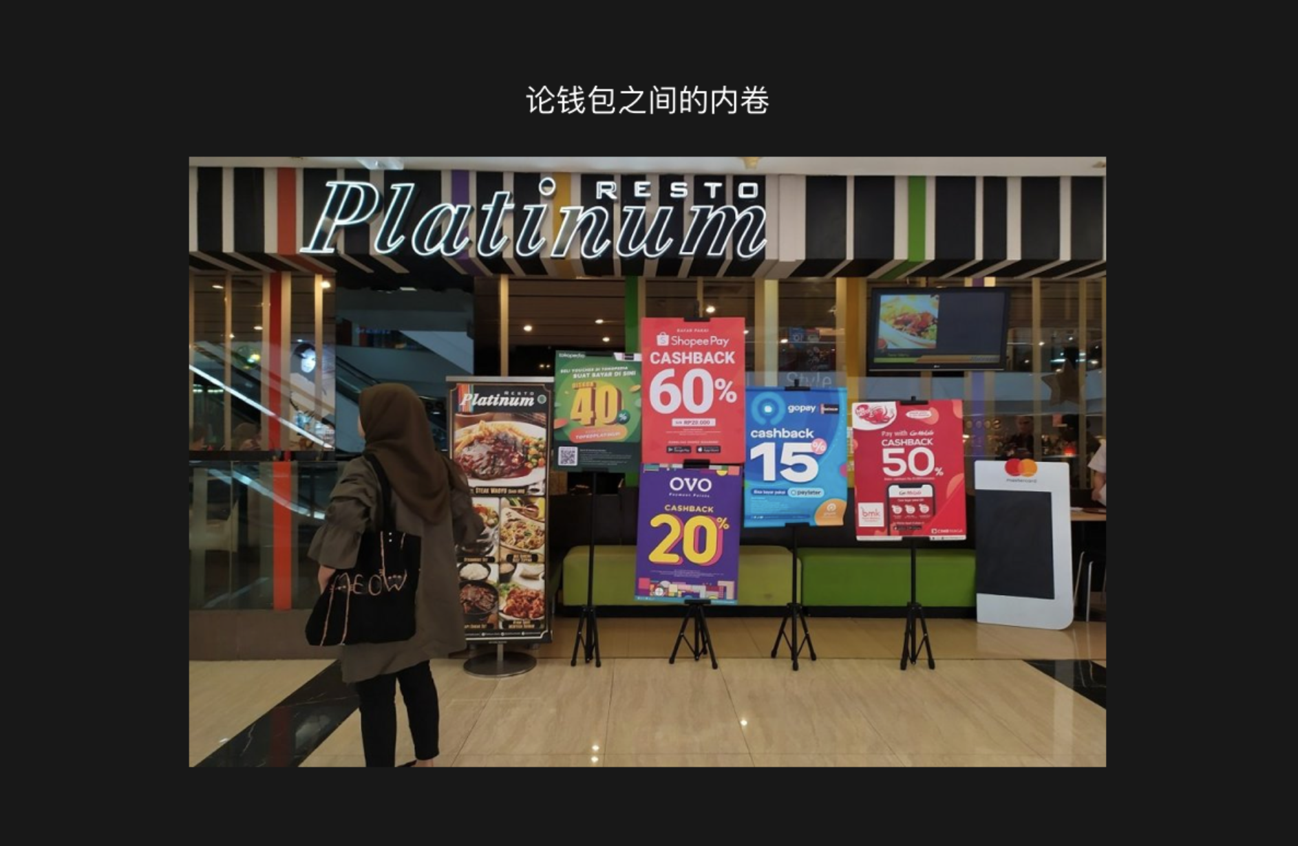 另外,當地的支付方式也非常多樣化,在印尼當地,可以看到滿大街關于錢包的 cashback 廣告。目前印尼主流的錢包支付有 GO-pay、OVO、Dana、LinkAja、ShopeePay。