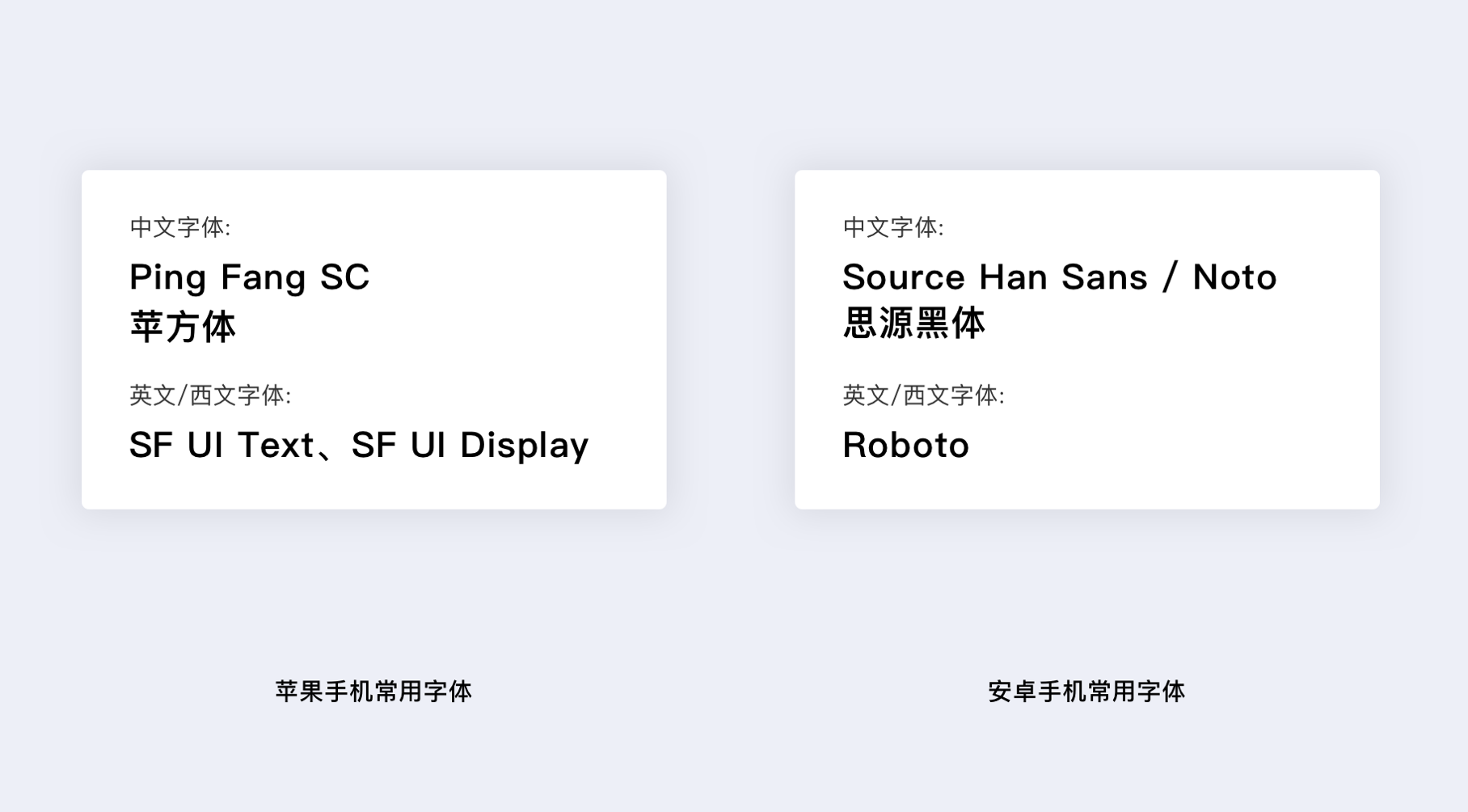 | 安卓 | Source Han Sans / Noto(思源黑體)|Roboto|