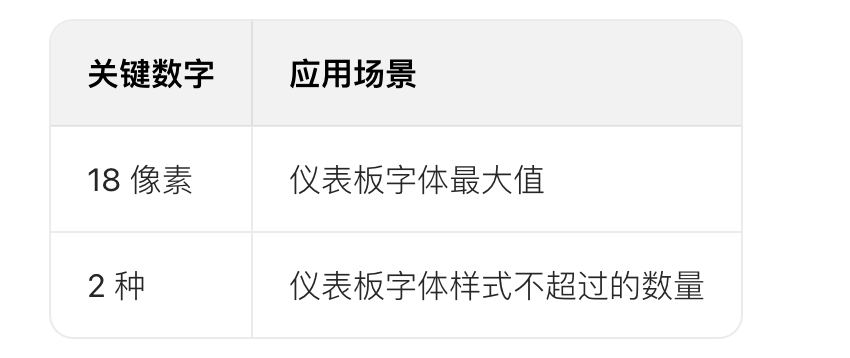 • 在用戶體驗和用戶界面方面,字體的風格和大小同樣重要,設計儀表板時建議使用不超過兩種字體樣式,以實現(xiàn)更清晰的 UI 設計。
