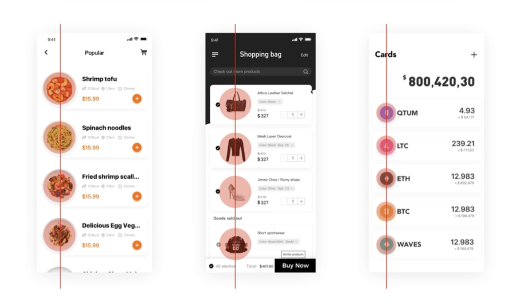 - 連續(xù)性:視覺偏向感知連續(xù)形式,元素共享明確界限區(qū)域則分一組,設(shè)計中常用卡片式組合相關(guān)元素。