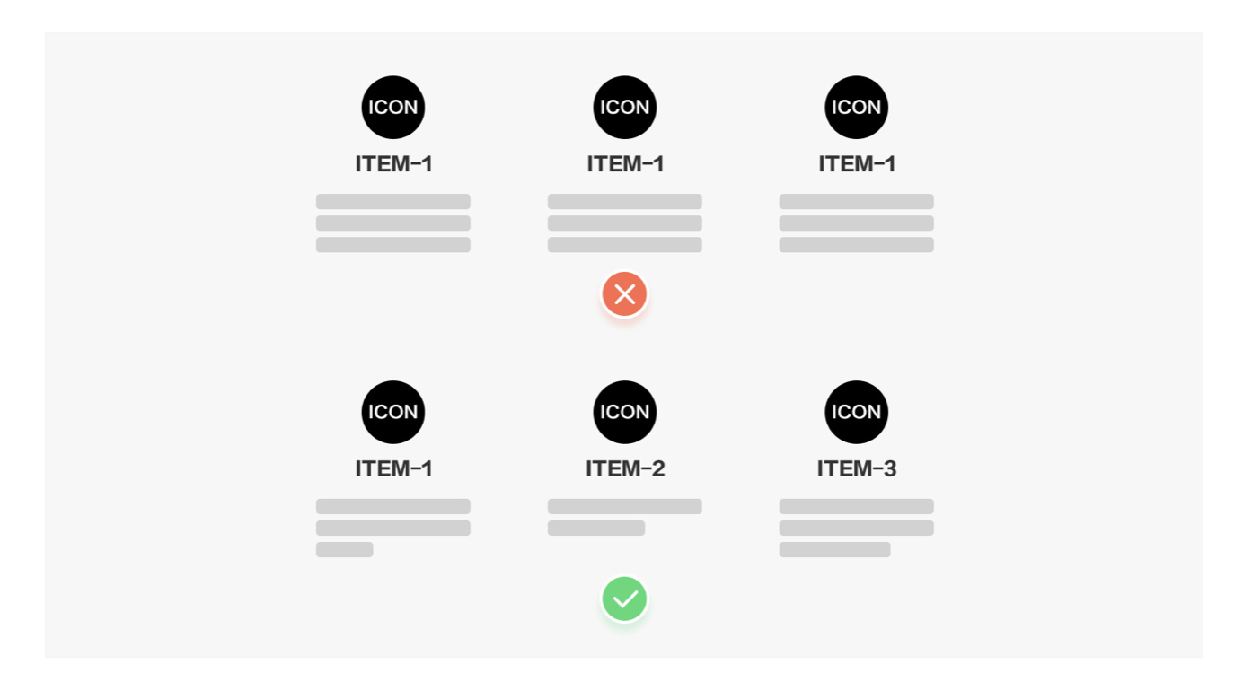 靜態的模塊在文字描述上可以主觀上進行控制,使得每個模塊都相對統一。然而有些文字是動態數據,不能很好地控制文字的字節長度,甚至會出現有的模塊有字節,有的模塊沒有字節。在這種情況,就要思考為空字節的情況加上固定的字節,還是讓其空置,這取決于產品需求和使用場景。