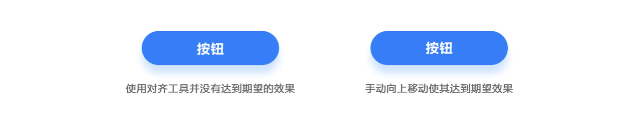 我們時常會遇到這種情況,例如畫一個按鈕,里面有文字,一般來說文字都是水平垂直居中對齊這個按鈕,于是我們會使用對齊工具。然而有時從效果上看,文字并沒有垂直居中對齊,那是因為文字在未被轉曲或者刪格化時,它的字體存在間隙。但總不能為了對齊就把文字柵格 / 轉曲,因此還需要用移動工具去調整位置。