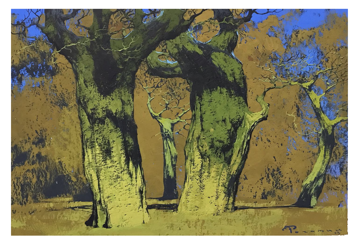 Artem Rohovyi 的創(chuàng)作核心,是對冬日枯樹的深度描摹。在他筆下,枯樹不再是生命凋零的象征,而是冬日浪漫的 “骨架”。
