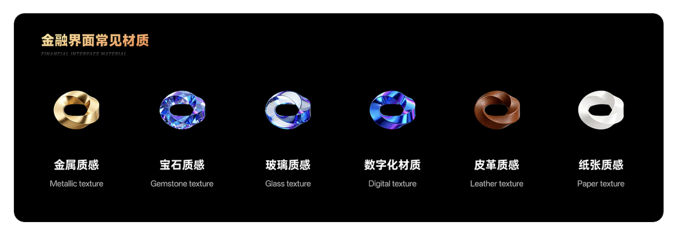 材質(zhì)是品牌理念的無(wú)聲傳遞者。傳統(tǒng)金融機(jī)構(gòu)傾向于用金屬、皮革等材質(zhì)凸顯歷史積淀與權(quán)威感;互聯(lián)網(wǎng)金融平臺(tái)則偏愛(ài)玻璃、數(shù)字化材質(zhì),傳遞便捷與智能;高端私人銀行則通過(guò)寶石、細(xì)紋皮革等材質(zhì),營(yíng)造專屬稀缺的奢華感。一套統(tǒng)一且貼合定位的材質(zhì)體系,不僅能快速建立用戶信任,更能形成獨(dú)特的品牌視覺(jué)標(biāo)識(shí),讓用戶一眼識(shí)別 “這是值得托付的平臺(tái)”。