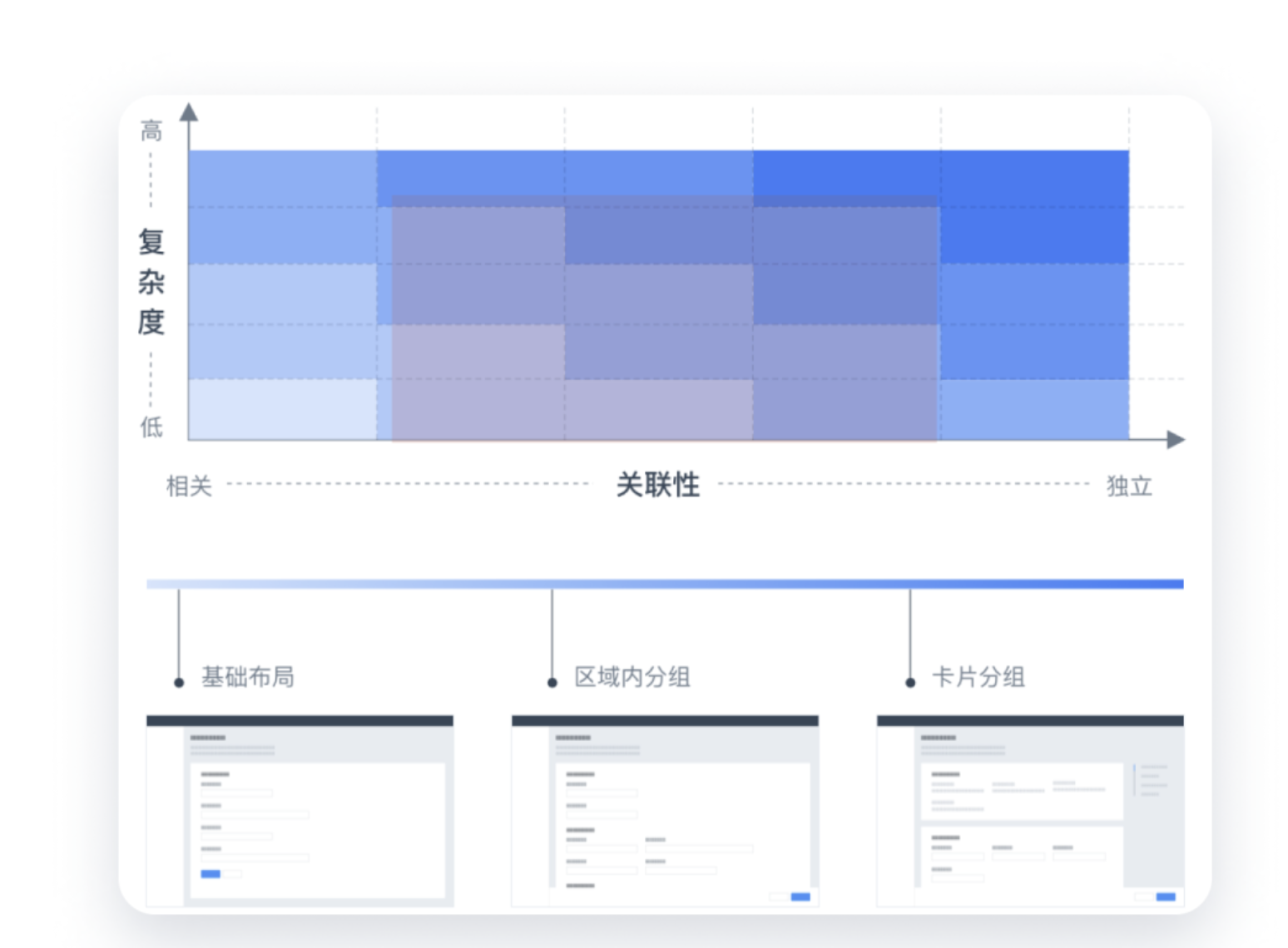選擇何種布局,關(guān)鍵在于梳理信息的 "復(fù)雜度" 與 "關(guān)聯(lián)性":