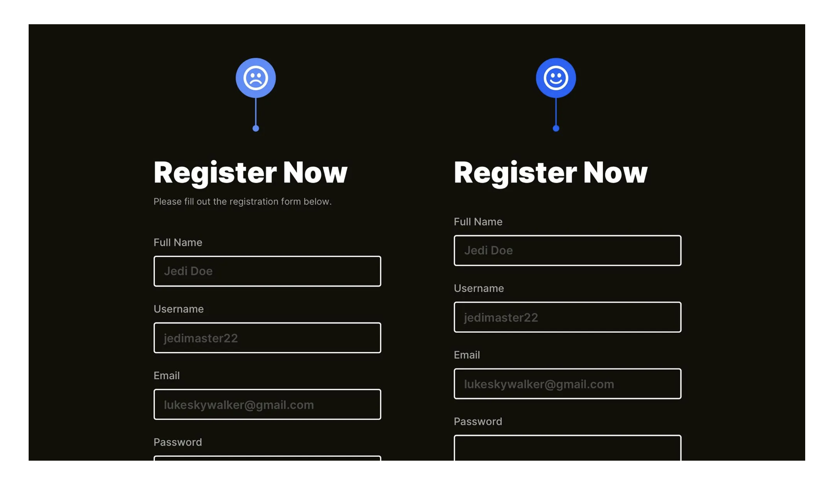 用戶填寫表單時,最怕填完一堆內容才發現某個字段出錯。在用戶輸入的過程中,就要給出即時反饋。