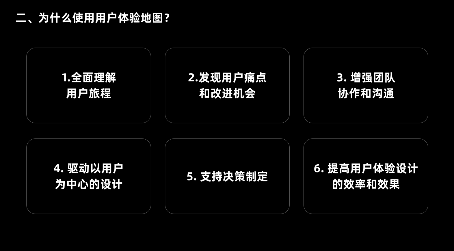 制作用戶體驗(yàn)地圖能為產(chǎn)品團(tuán)隊(duì)帶來多維度價值,從認(rèn)知、協(xié)作到?jīng)Q策形成全鏈路賦能,核心體現(xiàn)在六大方面: