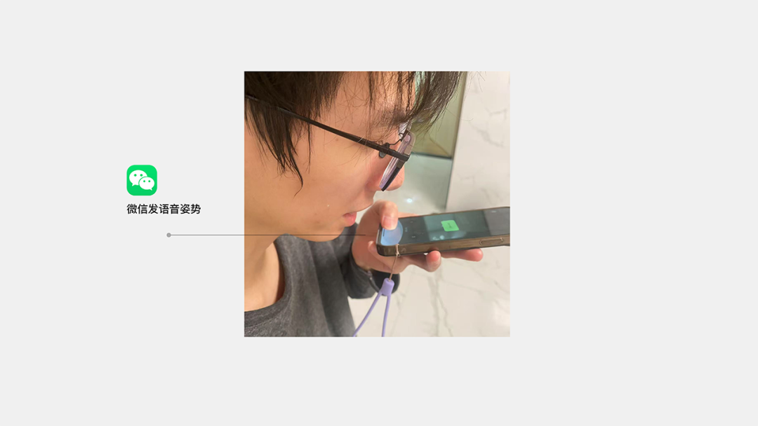 通過系統性分析,我們意識到問題的本質在于交互模型與用戶任務目標之間存在內在沖突 :長按動作本身與微信發語音交互類似,易引起貼近設備的心理暗示。