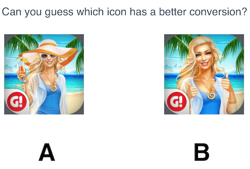 規劃app的內頁時,你需要最終確定以下要素:標題、圖標、屏幕截圖和關鍵詞。你可以詢問專家的建議或者跟著直覺走,許多app發布者都會先內部產生一個想法然后再詢問內容戰略顧問或者市場顧問;或者可以根據直覺生成幾個備選項,然后進行測試去發現哪一個的效果更好。就后者而言,A/B測試顯然是在可控環境下找出兩個變量中表現得更好的那一個的最佳方法,這意味著一個從頁面瀏覽量到app下載量的更好的轉換;以App Store的app頁為例,你能猜到下圖哪個icon有著更好的轉化率么?