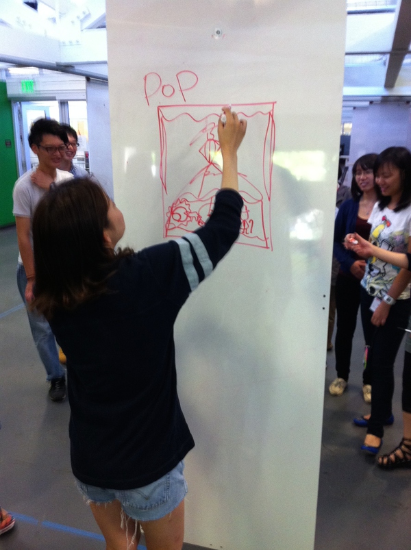 除了具體的步驟和視覺化思考,Design Thinking所倡導(dǎo)的社會化思考是一種設(shè)計態(tài)度,思維,和與人溝通的方法。所以貫穿在這五步里面,我們做了大量的Improv Game(即興游戲),去改變學(xué)生的思維方式,讓學(xué)生更懂得如何在團(tuán)隊里與人合作(因為IDEO本身就是很注重團(tuán)隊精神的)以下列舉幾個有意思的: