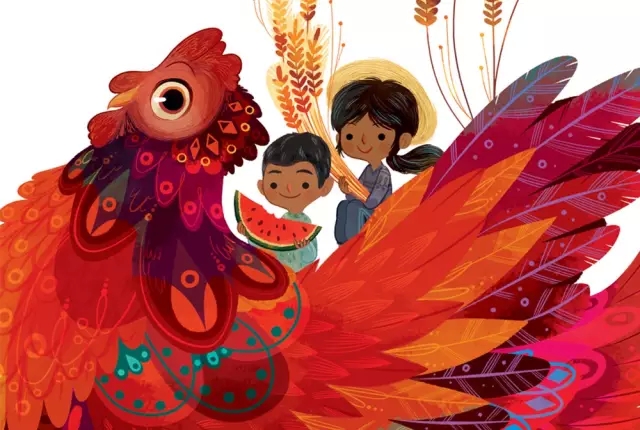 黃色和橙色可以強化紅色的溫暖感覺。特別是加入黃色可以中和紅色中傳遞的冷感,通常用在表現兒童、食物、自然等作品中。