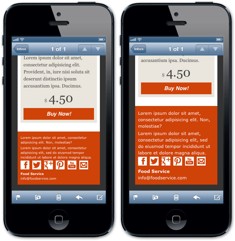 嚴(yán)禁復(fù)雜 —— 尤其是在郵件上。始終避免使用復(fù)雜的結(jié)構(gòu),否則在小屏幕上渲染時(shí)一定會失敗。請記住許多設(shè)備是不支持媒體查詢的(例如谷歌郵件),所以我們不能指望成熟的內(nèi)容重排技術(shù)。