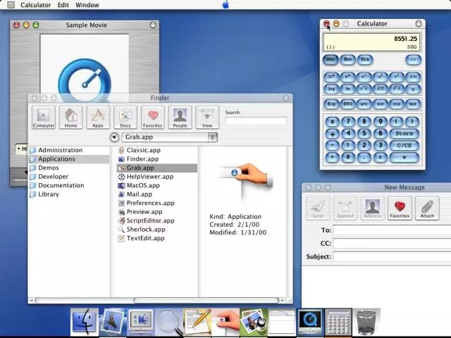 為了更加貼近現實,讓界面更加真實,MacOSX率先邁出了擬物化的步伐,推出了Aqua的概念,并在第三個開發版發布的時候,應用到界面的每個角落: