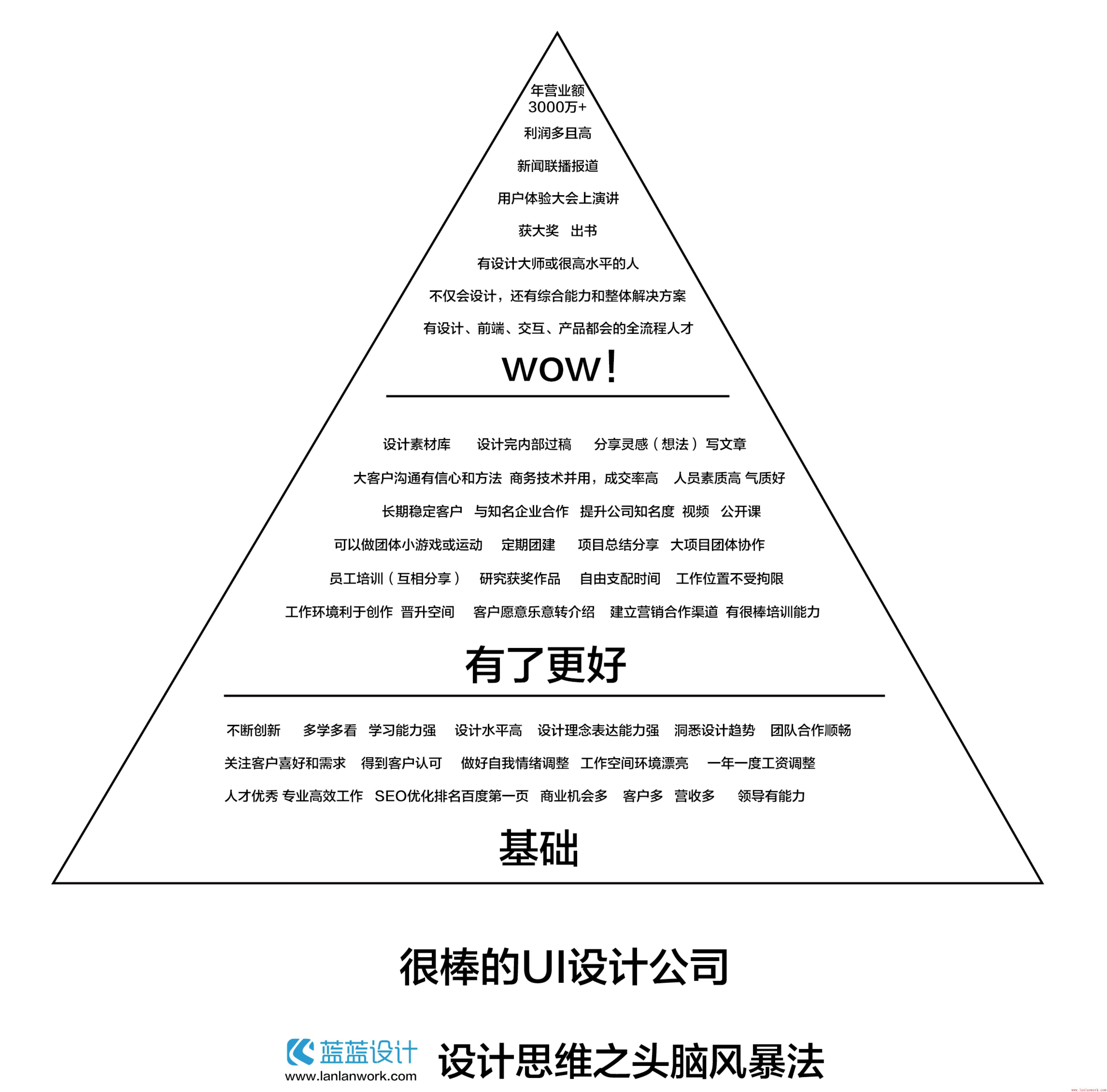 藍藍設計組織部分小組成員以“如何成為一家很牛的UI設計公司?”為主題進行了一次頭腦風暴活動。我們將過程做了一下梳理。