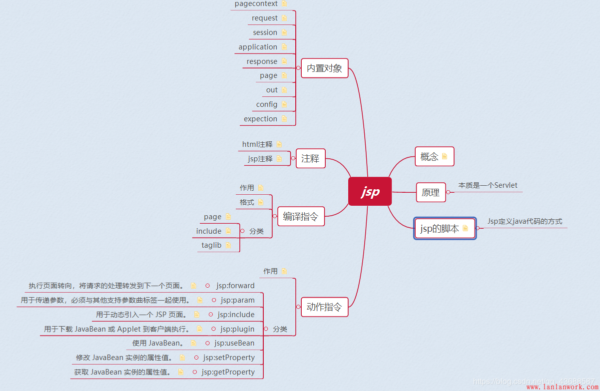 動作指令與編譯指令不間,編譯指令是通知 Servlet 引擎的處理消息,而動作指令只是運行時的腳本動作。編譯指令在將JSP 編譯成 Servlet 時起作用:處理指令通??商鎿Q成 Java腳本,是 JSP腳本的標準化寫法。