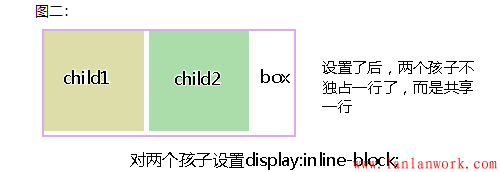 對兩個孩子使用float:left,我在上一篇浮動布局講過,這是父元素會高度坍塌,所以要閉合浮動,對box使用overflow:hidden,效果如下: