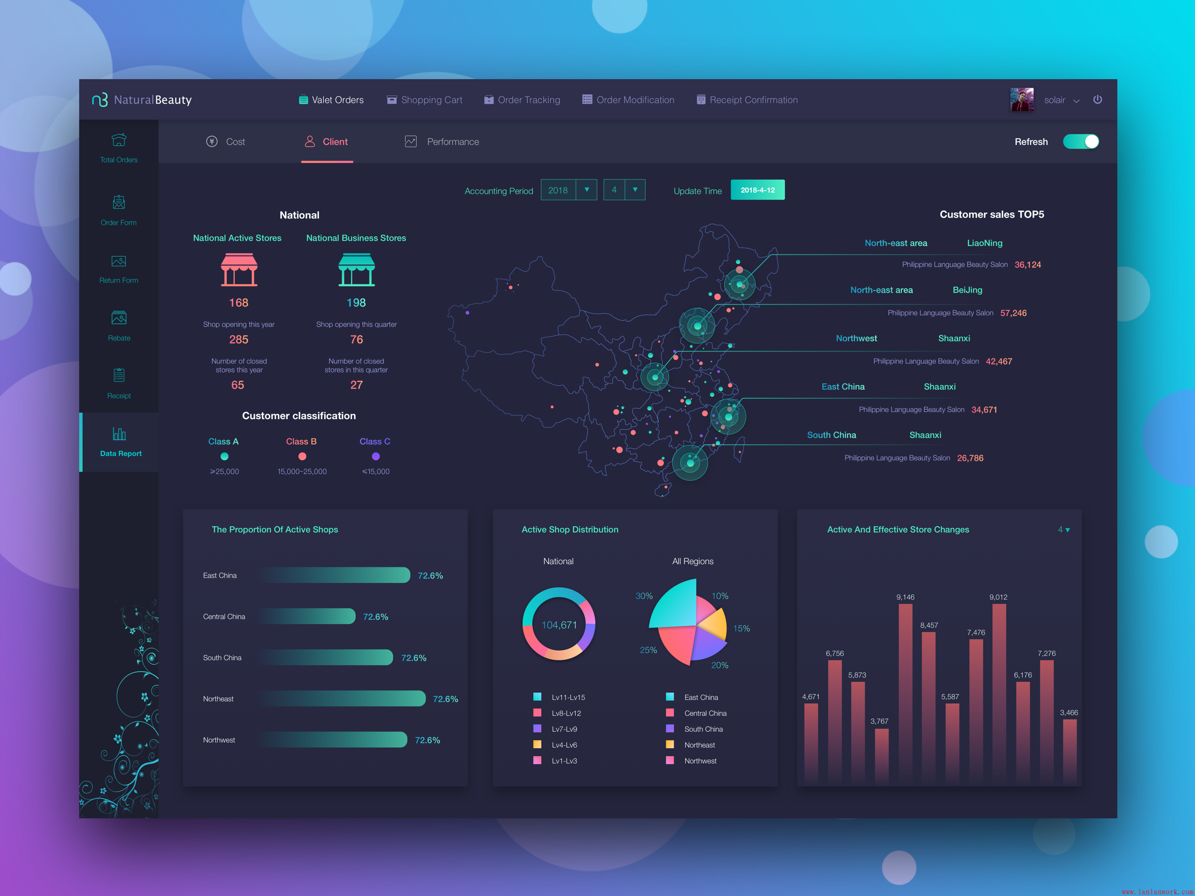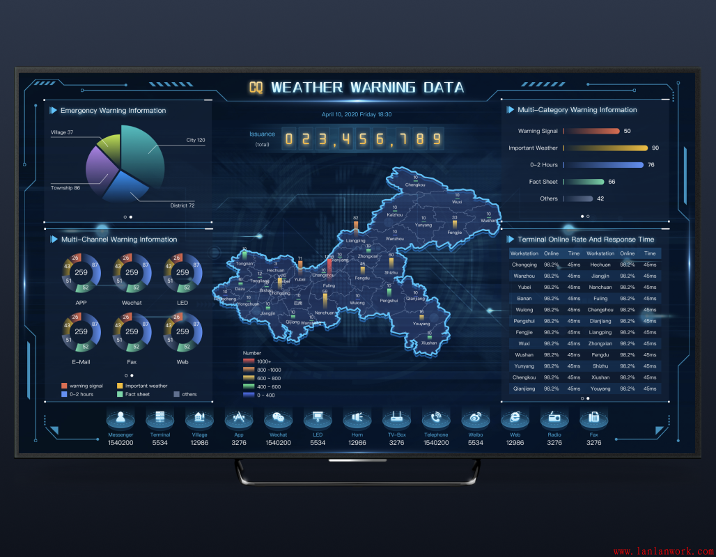 大屏可視化界面設(shè)計(jì)可謂是當(dāng)今行業(yè)、企業(yè)發(fā)展的見證,生動(dòng)直觀地再現(xiàn)了行業(yè)、企業(yè)的全貌。不僅作為展示,方便了解、監(jiān)督;同時(shí)可以作為一個(gè)有效的管理平臺(tái),帶來效益。大屏界面面向范圍廣,協(xié)同性好,易于被采用。下面幾個(gè)大屏的界面設(shè)計(jì),沉穩(wěn)的背景上,加上亮色作為點(diǎn)綴和強(qiáng)調(diào)。既不失其風(fēng)格,又富有靈動(dòng)性。
