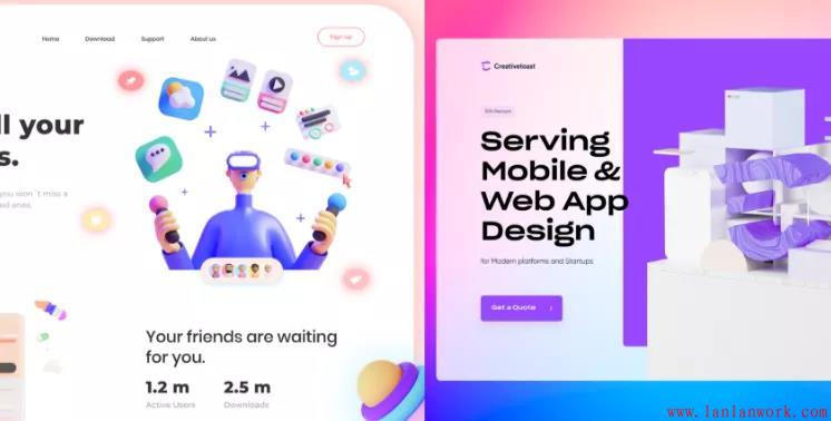 2021年設計趨勢將會如何?你是否準備好迎接3D插圖設計、玻璃形態和色彩豐富的設計趨勢了呢?
