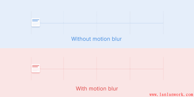 物體的運動軌跡應該是清晰銳利的,所以盡量不要使用動態模糊(在AE中做動畫效果除外)。即使是在現在最新的設備上也很難重現這些效果,不能把這種動態模糊的動畫效果應用到界面中。