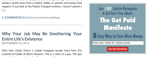 Pocket Changed的訂閱表單是個不錯的例子,他們向訪問者展示了當前已有多少人進行了訂閱下載;此外,他們也非常簡單直接的讓訪問者了解到在填寫郵箱后可以得到什么。如果可以再加入一些來自真實訂閱用戶的贊許反饋,這個表單的轉化效果會更好。