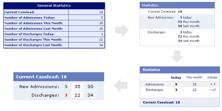 上圖是設計師對數據表格的優化過程,第一版為簡單的信息羅列;去掉重復的文案后并將表格本身的設計弱化,突出內容本身,第二版相對清晰了很多;第三版繼續將重點進行加粗,改變排列方式可再次減少文案重復情況;第四版是該表格用戶調研過程中反映最好的版本,因為用戶會長期使用該表格來獲取數據,設計將非重點文案進行隱藏,用戶鼠標移上后才顯示該數據代表的含義,教育過一次后用戶再看這個表格就不再受眾多解釋文案的干擾,直接獲取想要的信息;一個看似簡單的表格,抓住重點信息,優化空間還是很大的。