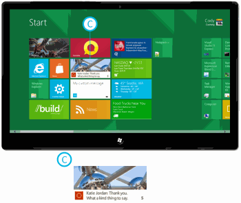 你也可以使用toast notifications 向用戶進行提示。這類即時信息會在屏幕右上方出現,并且會對用戶在當前應用中的任務起到干擾和中斷的作用。通常,在某個應用第一次運行的時候,我們可以讓用戶選擇是否接受這種提示方式。toast類似于iOS當中出現在屏幕頂部的通知,不過在Windows 8中,設計師可以從一組toast模板中進行選擇,使它的呈現方式與當前應用具有更強的相關性。