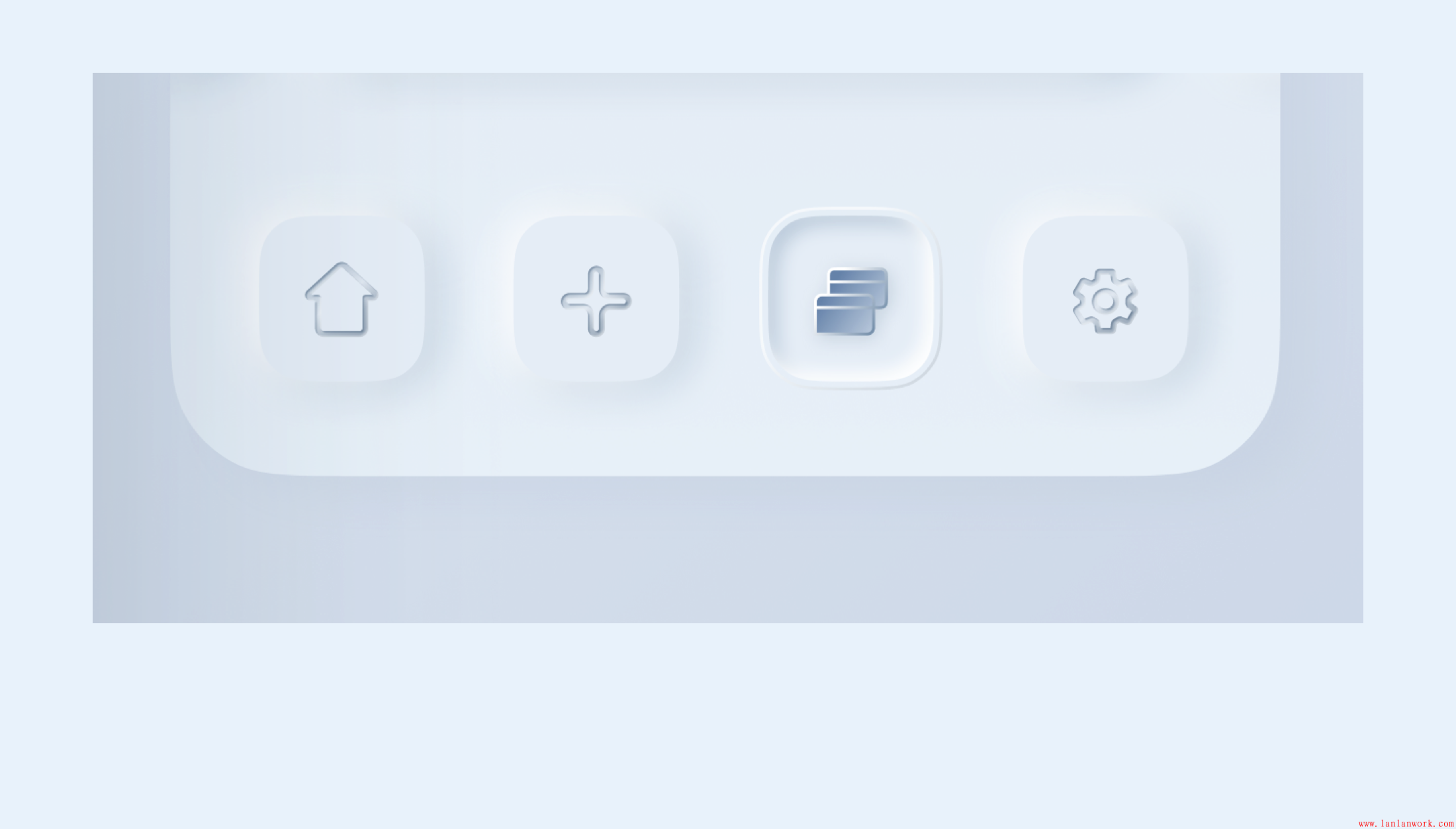在選中狀態按鈕的處理,首先是在光源的處理上是統一的,加上光影的處理,就很容易做出來凹進去的感覺,想要是凹槽的厚度感、質感看起來更加舒服,這里的處理方式和卡片的處理方式原理一樣,添加漸變描邊就可以解決。