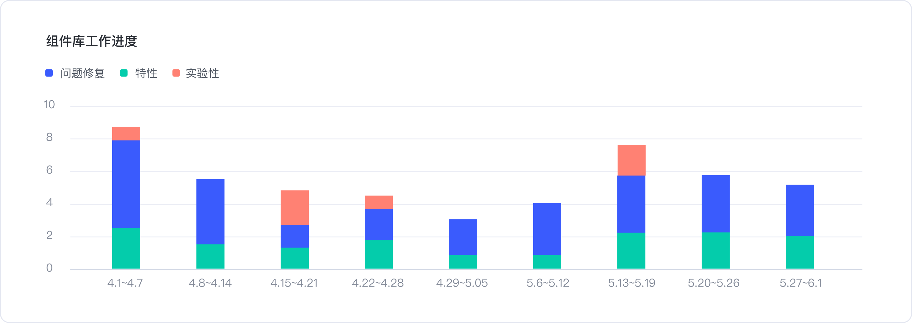 1.組件庫迭代進度-迭代性質(zhì)可分為問題修復(fù)、特性和實驗性功能增優(yōu)。
