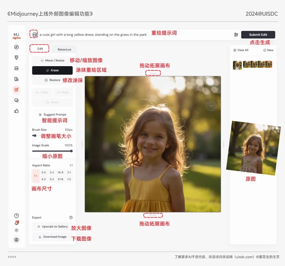 【8】Mastodon推出消息通知分組功能,提高通知消費效率1、Midjourney 外部圖片編輯功能上線 Midjourney最近推出了外部圖片編輯功能,解決了之前無法準確控制生圖內容和不能上傳本地圖像進行二次編輯的問題。新功能支持通過互聯網鏈接或本地上傳圖像,并提供編輯和重繪兩種處理方式。Retexture(重繪)功能:類似于Controlnet的深度控制功能,保留原始結構,根據提示詞重新繪制畫面??梢愿淖冿L格、材質等,如將2D插畫轉換為3D風格。應用場景包括2D轉3D、線稿轉實物圖、線稿上色等。Edit(編輯)功能:支持局部重繪和外繪擴展??梢酝磕ㄐ枰乩L的區域,并輸入提示詞進行編輯。支持連續多次編輯,提高工作效率。2、Adobe 正式推出 AI 視頻模型——Firefly Video Model,一句話 P 視頻Adobe 在今年的 Adobe Max 大會上推出了名為 Firefly Video Model 的 AI 視頻模型,正式進軍生成式人工智能領域。Firefly Video Model 旨在簡化和加速視頻創作,增強視頻的故事講述能力。Generative Extend(生成拓展):用于在視頻片段的開頭或結尾進行生成式擴展,以保持視頻的連貫性和平滑性。目前已集成至 Adobe Premiere Pro。