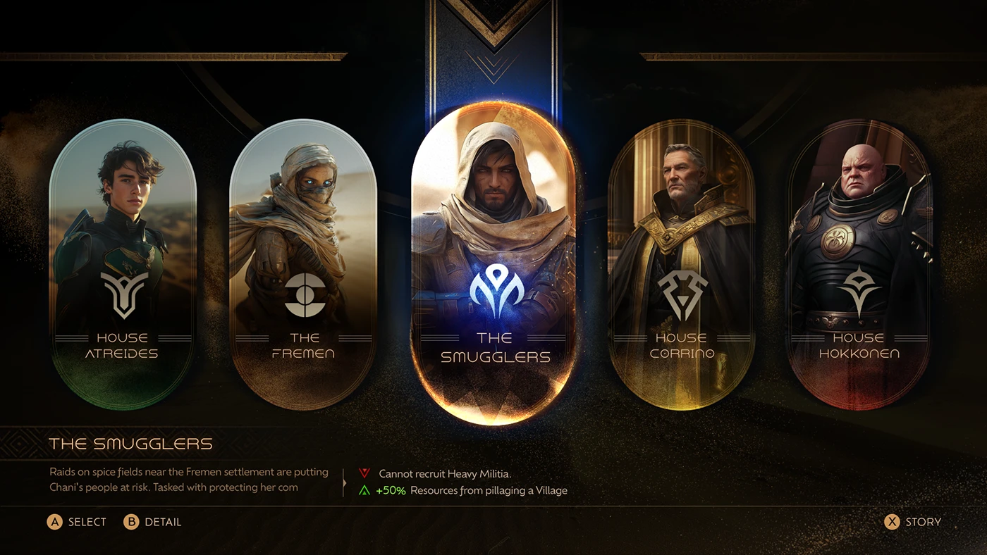 《沙丘》的世界觀強調沙漠、貴族與荒涼感,UI 也延續了這一氛圍: