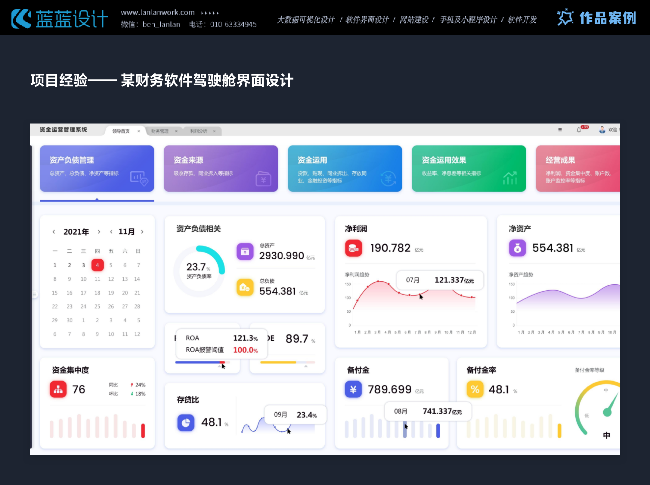 蘭亭妙微在設計這些企業級決策支持系統時,始終秉持“用戶為中心”的設計理念,注重用戶z體驗的每一個細節。從用戶調研到原型設計,再到迭代優化,每一步都緊密圍繞用戶需求展開。技術層面,團隊充分利用了前端框架(如React、Vue.js)、大數據處理(Hadoop、Spark)、數據可視化庫(ECharts、D3.js)以及AI/ML技術,確保系統的性能、可擴展性和智能化水平。