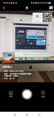 例:高德地圖的水印拍照,可定義圖片、二維碼、時間及文字,定位到拍照的地圖上。