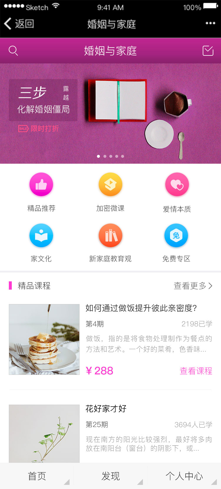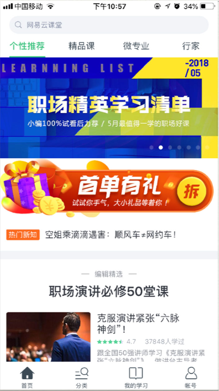 課程列表采用模塊化設(shè)計(jì)+橫向滾動(dòng),這種交互方式會(huì)增加頁(yè)面操作趣味性,一定程度上增加用戶(hù)粘性。此外,這種設(shè)計(jì)方式會(huì)增加頁(yè)面利用率,將橫向頁(yè)面利用起來(lái),一屏展示更多內(nèi)容,在首屏可以展示更多內(nèi)容,在保證內(nèi)容已閱讀的同時(shí),提高頁(yè)面內(nèi)容承載量。第三版 ?