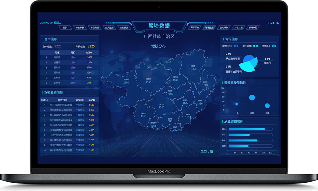 行業(yè)態(tài)勢展示了道路交通運(yùn)輸行業(yè)的基礎(chǔ)數(shù)據(jù)和走勢,實(shí)時(shí)反映行業(yè)的運(yùn)行狀態(tài),將采集的數(shù)據(jù)形象化、直觀化、具體化。為了加強(qiáng)某些重點(diǎn)工作,我們還需加入“聯(lián)網(wǎng)聯(lián)控”、“互聯(lián)互通”等相關(guān)專題。系統(tǒng)所具備的數(shù)據(jù)管理能力可將現(xiàn)有的數(shù)據(jù)進(jìn)行有效的整合,快速準(zhǔn)確地提供報(bào)表并提出決策依據(jù)。